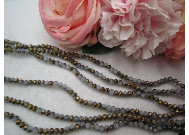 • PERLES CRISTAL RONDELLE FACETTE 4MM GRIS ET DORÉ