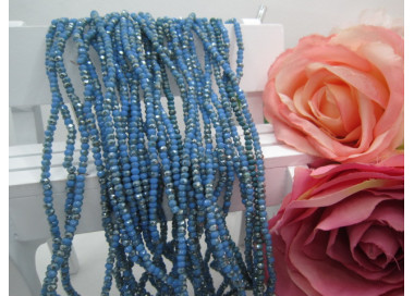 PERLES CRISTAL RONDELLE FACETTE 3MM BLEU ET ARGENTÉ