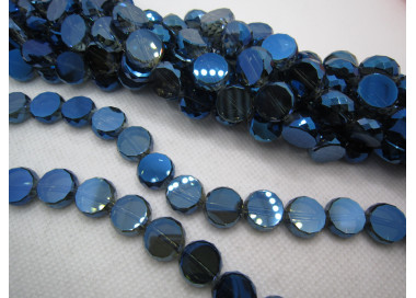 PERLES CRISTAL RONDE PLAT FACETTE AUTRICHE 12MM BLEU