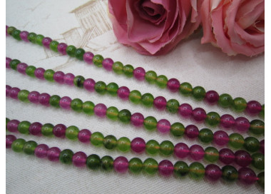 PERLES JADE 8MM FUSHIA ET VERT MIXTE
