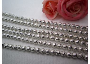 PERLES EN PIERRE DE LAVE RONDES MÉTALLISÉ 8 MM ARGENTÉ