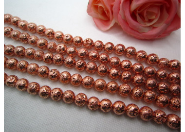 • PERLES EN PIERRE DE LAVE RONDES MÉTALLISÉ 10 MM DORÉ ROSE
