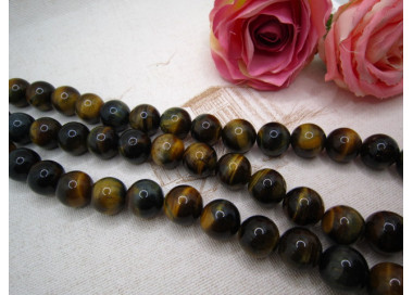 • PERLES OEIL DE TIGRE JAUNE BLEUTE 16MM